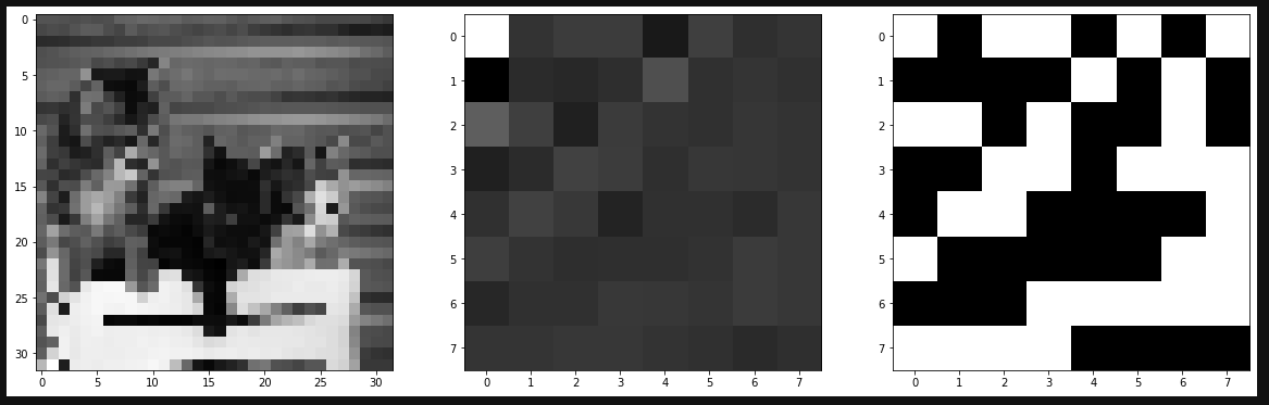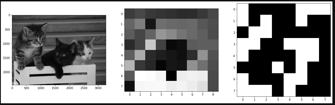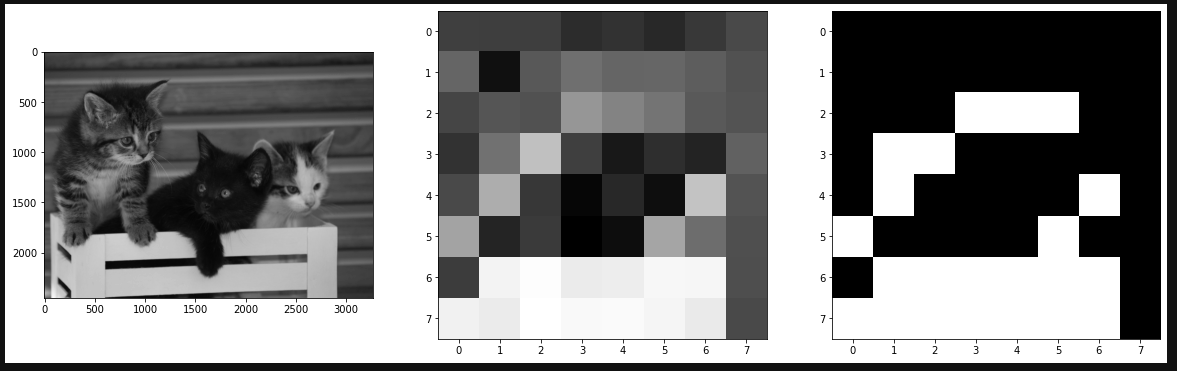마지막으로 좌측 8x8만 따로 떼어내어 median 을 구해 그 보다 크면 1 작으면 0으로 나타낸다.