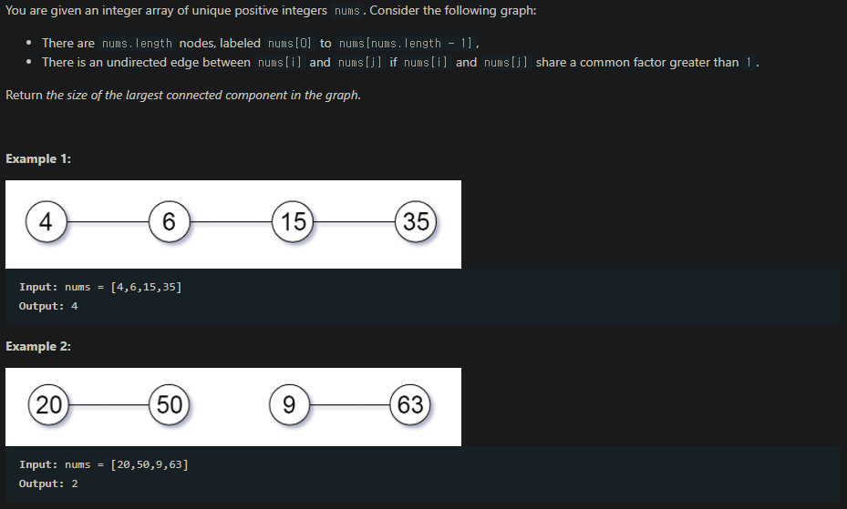 https://leetcode.com/problems/largest-component-size-by-common-factor/