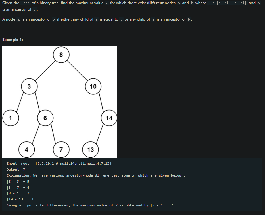 https://leetcode.com/problems/maximum-difference-between-node-and-ancestor/