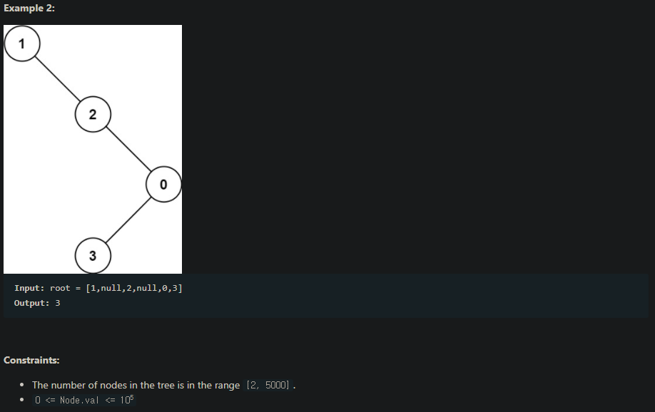 leaf 노드에 도달할 경우, 최대값과 최소값의 차를 return 해주고,