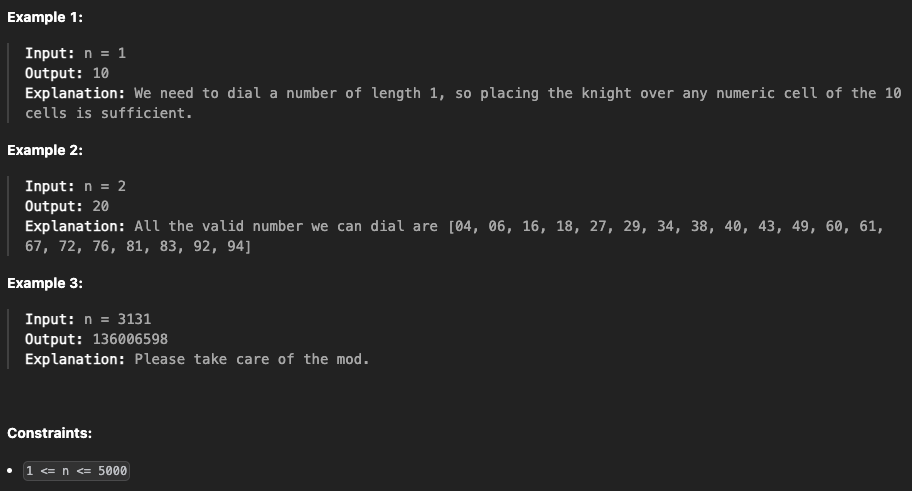 https://leetcode.com/problems/knight-dialer/description/?envType=daily-question&envId=2023-11-27