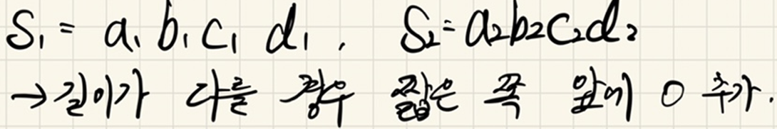 두 string이 같은 길이로 되어 있어야 편리하므로,