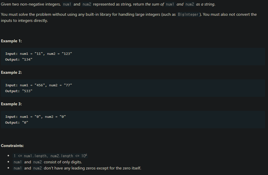 [LeetCode] 415. Add StringsLeetCode 2021. 8. 9. 21:40728x90