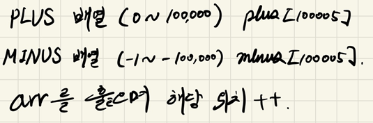 먼저, plus배열과 minus 배열을 만들어 준다.