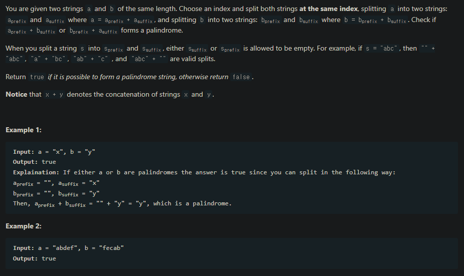 https://leetcode.com/problems/split-two-strings-to-make-palindrome/
