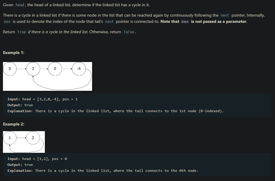이때 이 Linked List가 끝이 있는지 아니면 앞쪽으로 연결되어 싸이클이 만들어지는지 판단하는 문제다.