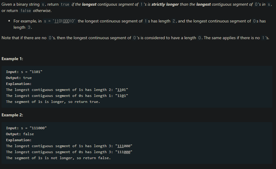 Longer Contiguous Segments of Ones than Zeros - LeetCode